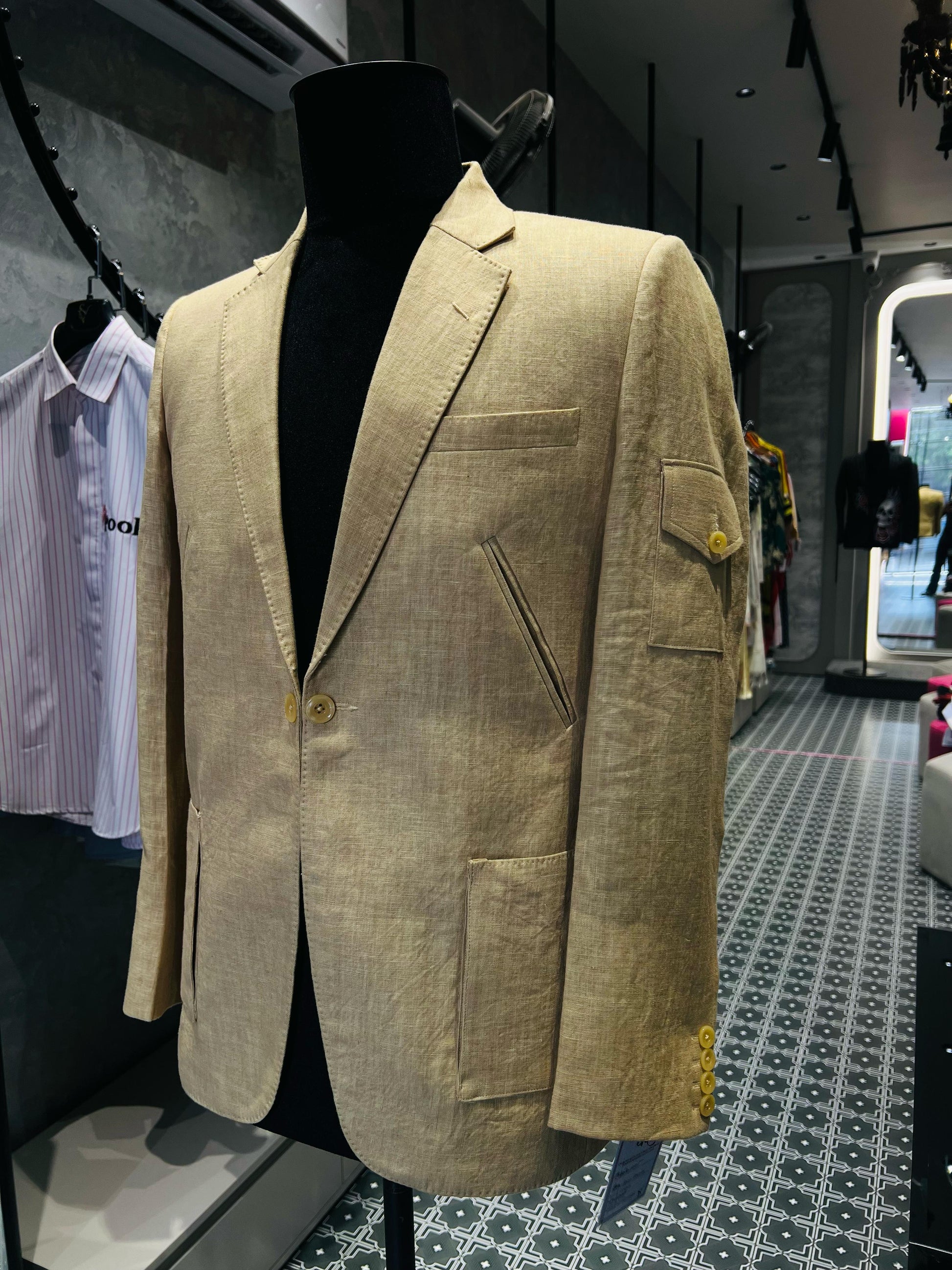Its natural texture, clean cuts, and muted color palette make it a wardrobe essential for the contemporary man who knows the power of subtle luxury.