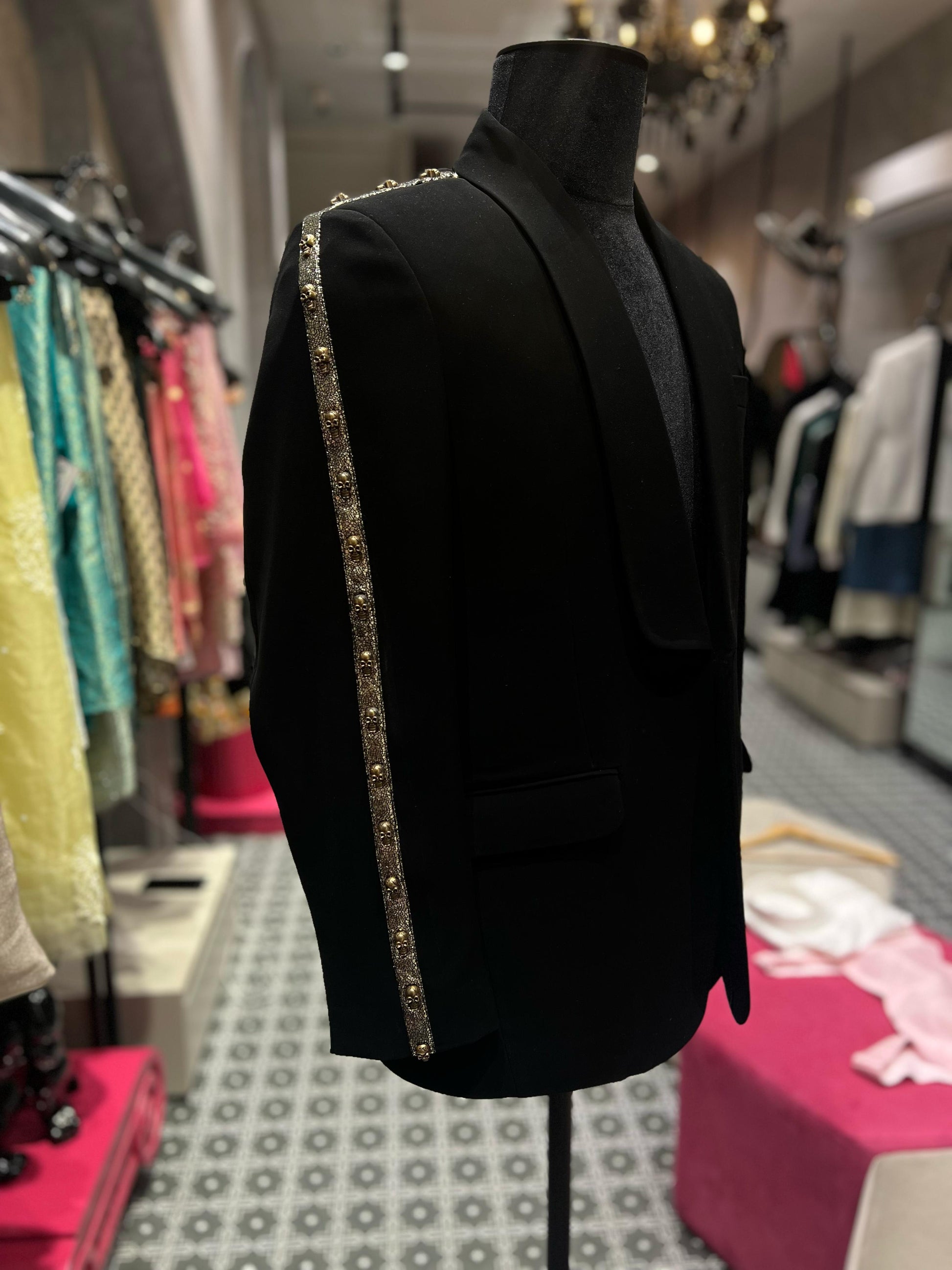 Step into your dark side with the Phantom Mode Tux — a sharp, structured blazer-tux set crafted in luxe Japanese fabric. Featuring edgy skull detailing, this piece blends luxe tailoring with rock ‘n roll rebellion. The perfect fit for night owls, cocktail villains, and after-dark icons.